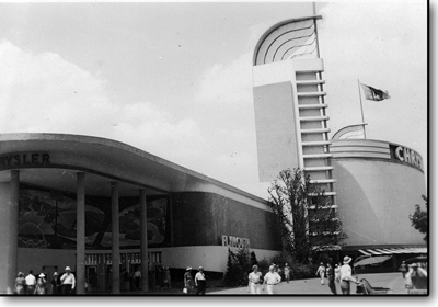 Raymond Loewy, the nation’s leading industrial design proponent of streamlining, created the exhibits for the Chrysler Corporation. It was noted that he was the only individual who could cross the country in a car, bus, plane or train of his own design.